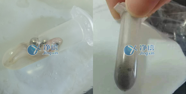 实验痛点:此次客户需要研磨的样品是3-6cm的整条鱼,之前用刀式匀浆机,但由于样品量少,用刀式的匀浆机研磨匀浆损耗比较大,因此选用净信效果更好。