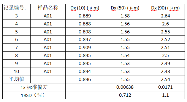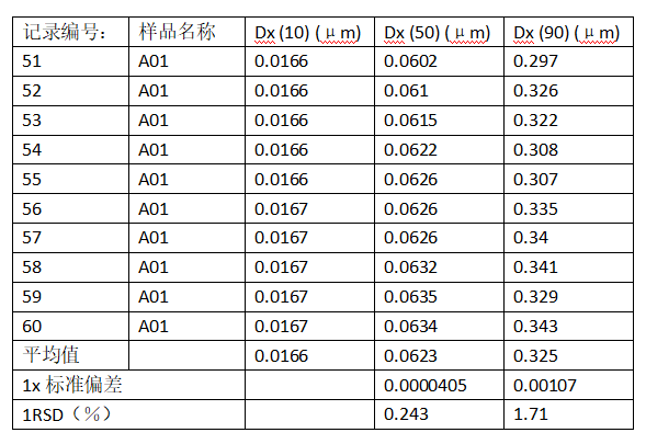 4.测试内容:铁氧体粉末通过该仪器分散后进行粒度检测,如果多次测量平均粒度结果稳定在50nm则表示效果正常。